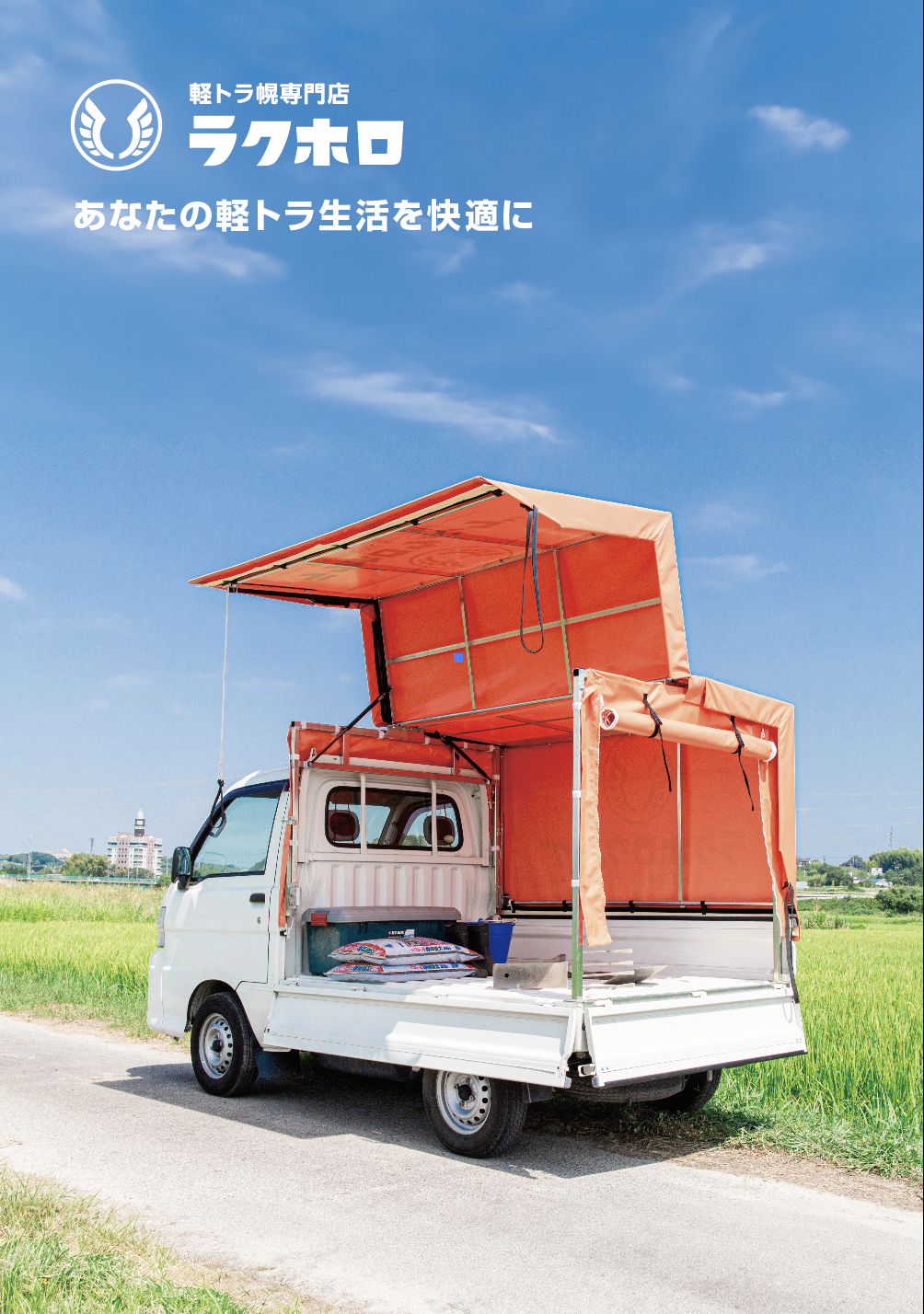 軽トラ幌専門店ラクホロのウェブサイトへようこそ。軽トラ幌に情熱を注ぐ40代、2児の父です。当社の製品があなたの日々の作業の助けになれば幸いです。どうぞごゆっくりご覧下さい。