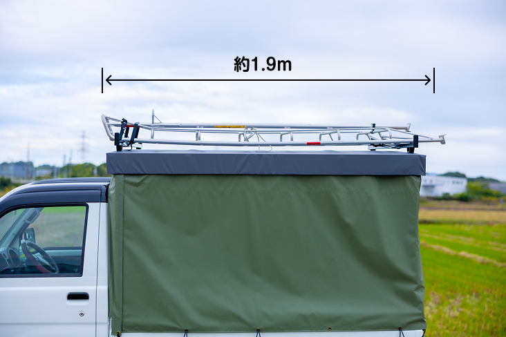 天井の前後にパイプを渡し、長尺物の積載を可能にします。耐荷重は60kg。走行時はしっかりと積載物を固定して下さい。