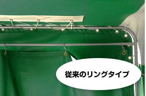 軽トラックにも少なからず同じことが言えますし、リングを通しての開閉はどうしてもぎこちないものに。ラクホロカーテンは少しでも使いやすい幌にするためにこだわって選んだ構造です!