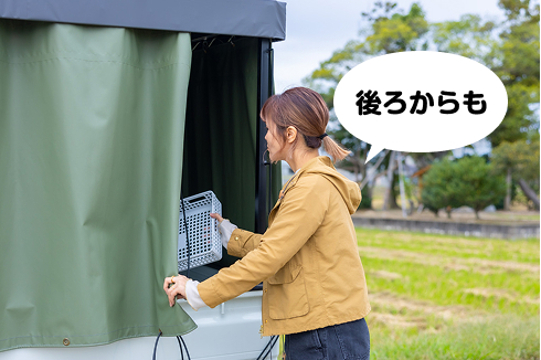 場所を選ばず、どこからでも荷台にアクセスできる手軽さがラクホロカーテンの強みです。
