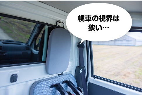 幌車の最大の泣き所の左後方の視界もバッチリ見渡せます。